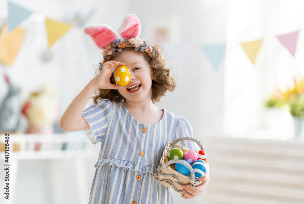 child with Easter painting eggs