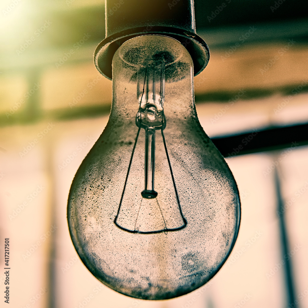 Old Incandescent Bulb in a Socket is Dusty and Stained.