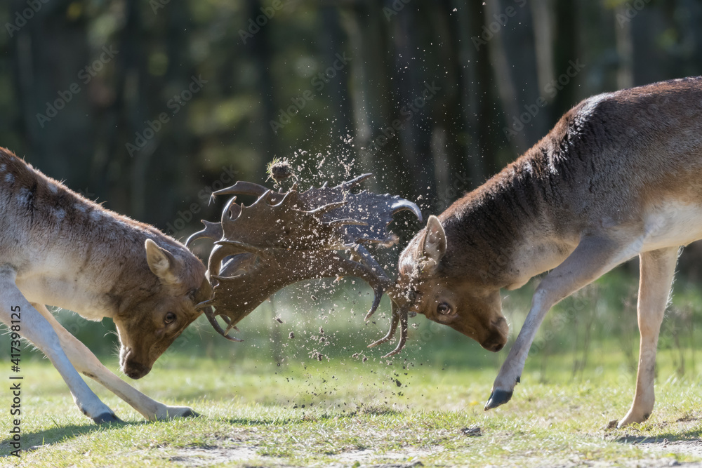 She's mine! No she's mine! Let's fight for it! Who will win? A fight between two fallow deer during rutting season, photographed in the Netherlands.