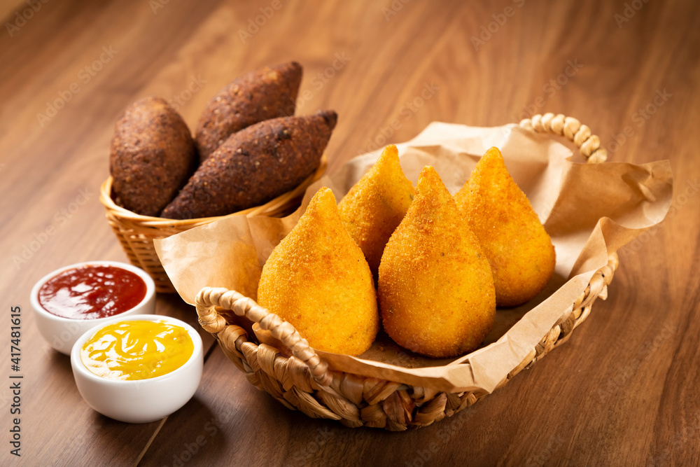 Coxinha of chicken with kibbeh, Traditional brazilian snack.