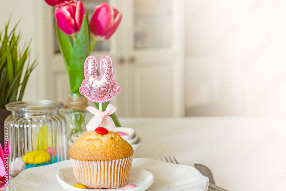 Easter cupcake and Easter bouquet of flowers