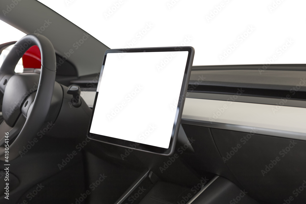 Electrical automobile digital control panel. Car display. White mock up for design progect.