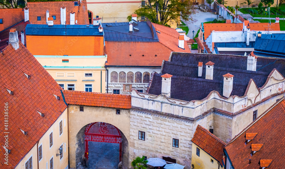 Colorful tiled rooftops of Czech Krumlov