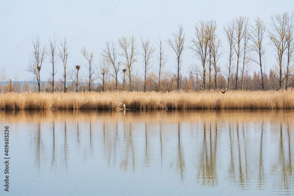Landscape of the Duero River in the "Reserva Natural Riberas de Castronuño" in Valladolid, Spain