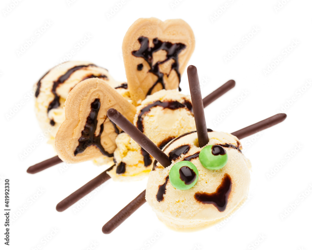Biene aus Vanilleeis mit Flügel, Augen und Fühler
