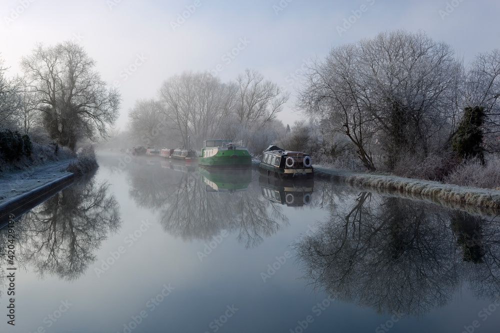 England - Wiltshire - Great Bedwyn - Kennet and Avon Canal on frosty winter morning