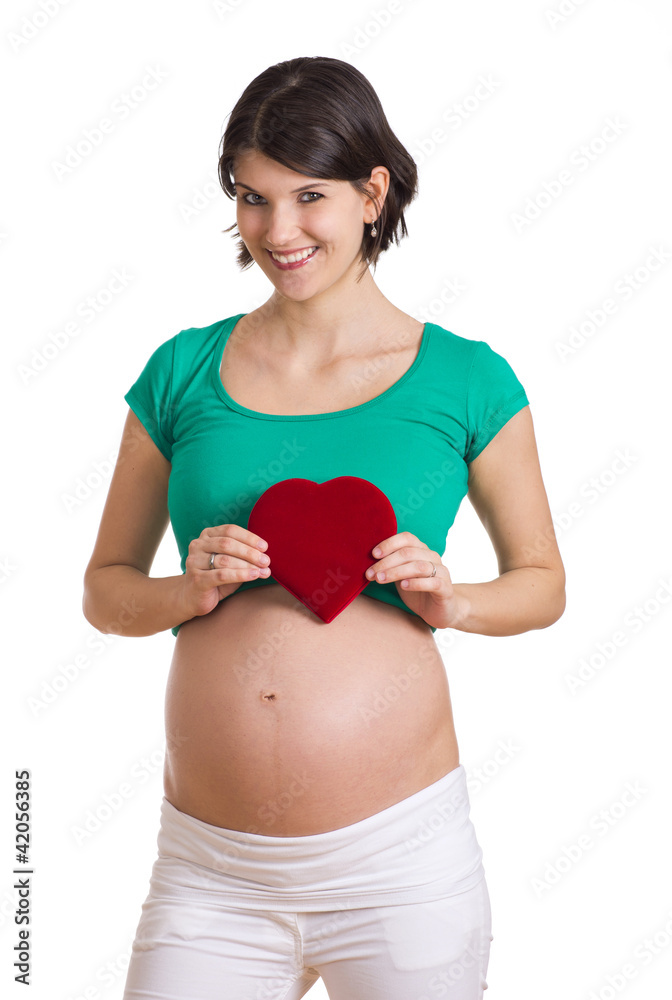 Schwangere mit Herz in der Hand
