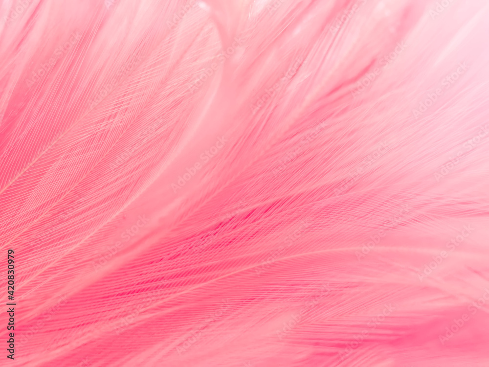 Beautiful abstract light pink feathers on white background, white feather frame texture on pink texture pattern and pink background, love theme wallpaper and valentines day
