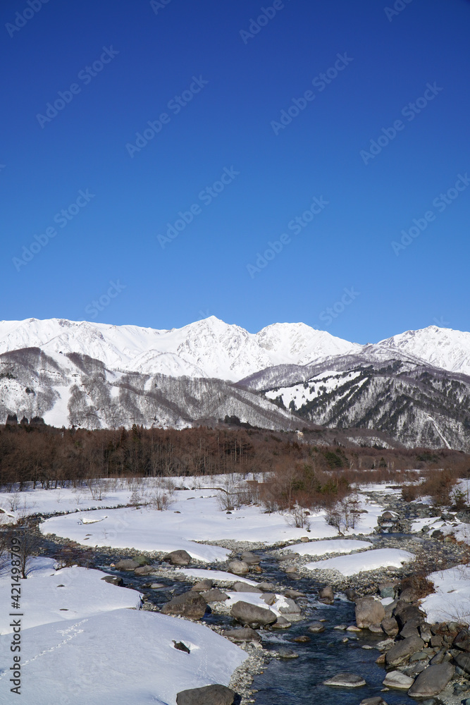 冬の白馬村と北アルプス