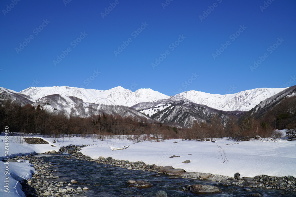 冬の白馬村と北アルプス