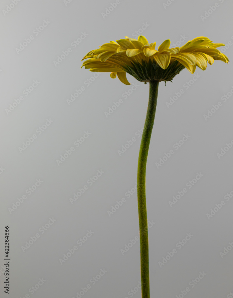Gerber side view, Beautiful blooming yellow gerbera flower, selective focus, blank for designers, copy space
