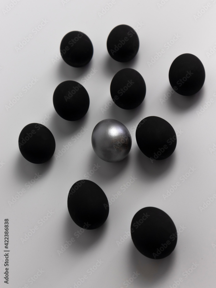 easter eggs in black on a white background, easter composition, copy space
