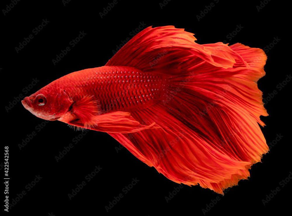 Betta fish, siamese fighting fish, betta splendens in red color isolated on black background