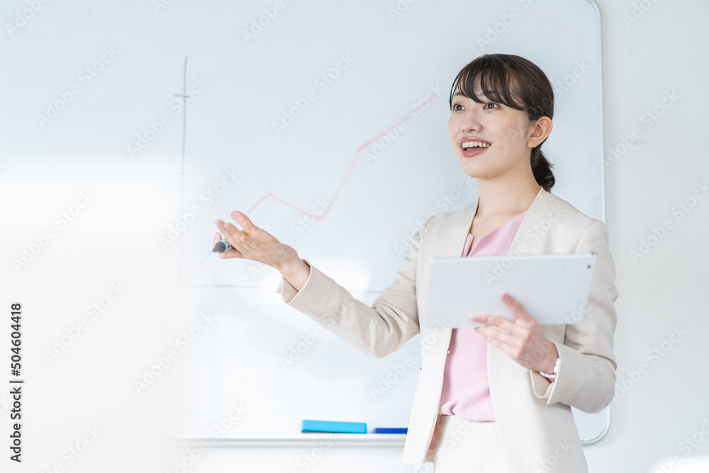portrait of a female dog of the Japanese shikoku breed Beautiful dog walks in snowy forest Snowfall fell on the dog's nose
