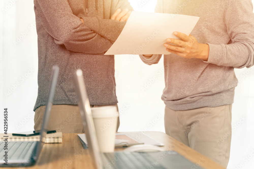 Business coworkers discussing new ideas and brainstorming in a modern office