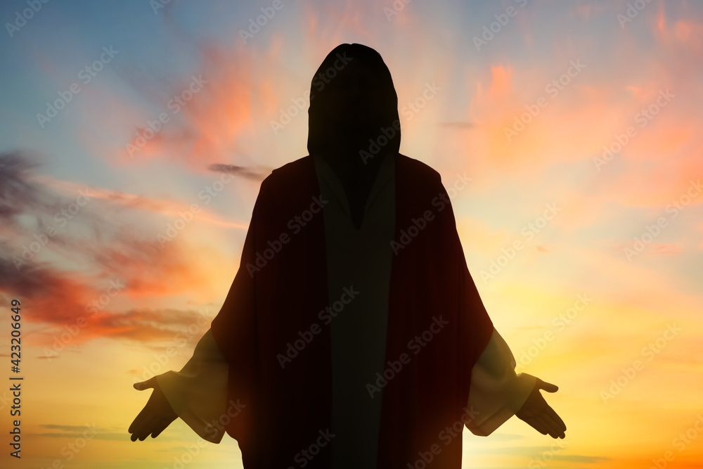 Silhouette of Jesus Christ outdoors at sunset