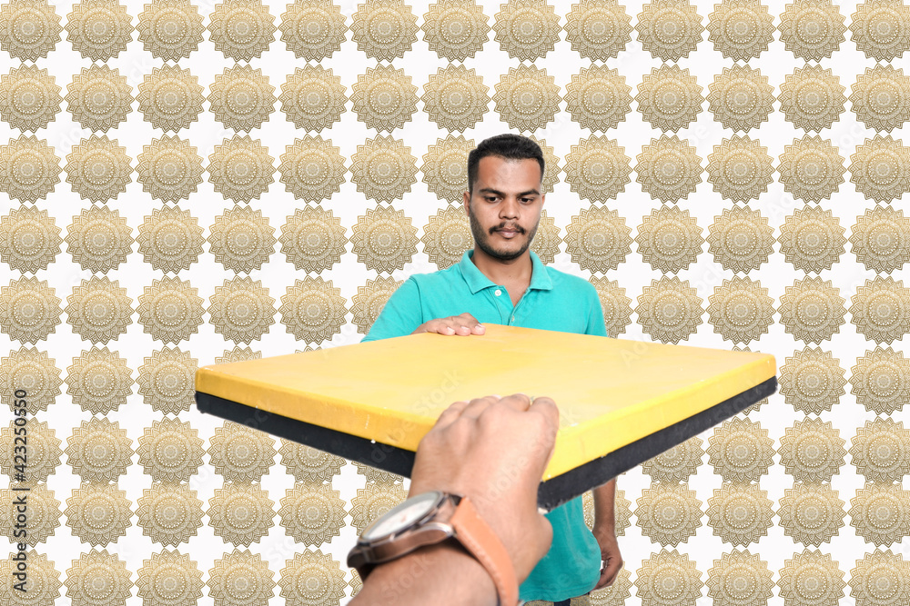 man taking a gift from delivery boy