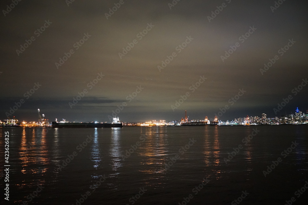 夜景 海 反射 ロンズデールキー ノースバンクーバー バンクーバー