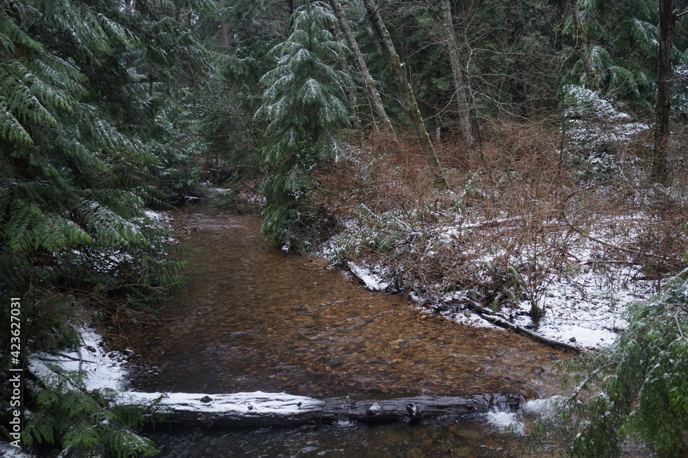 雪の降る森 小川 雪 冬 森
