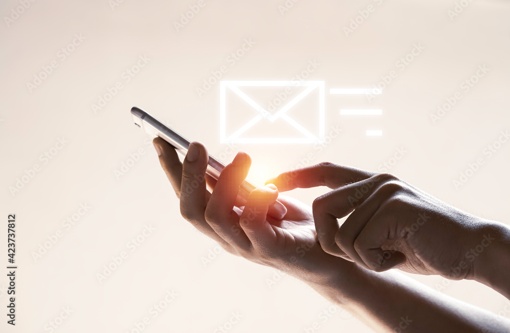 Hands and virtual letter icon with mobile phone for send email , technology concept.