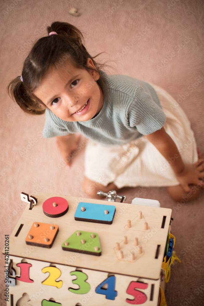 Toddler playing interactive games for good development at home.