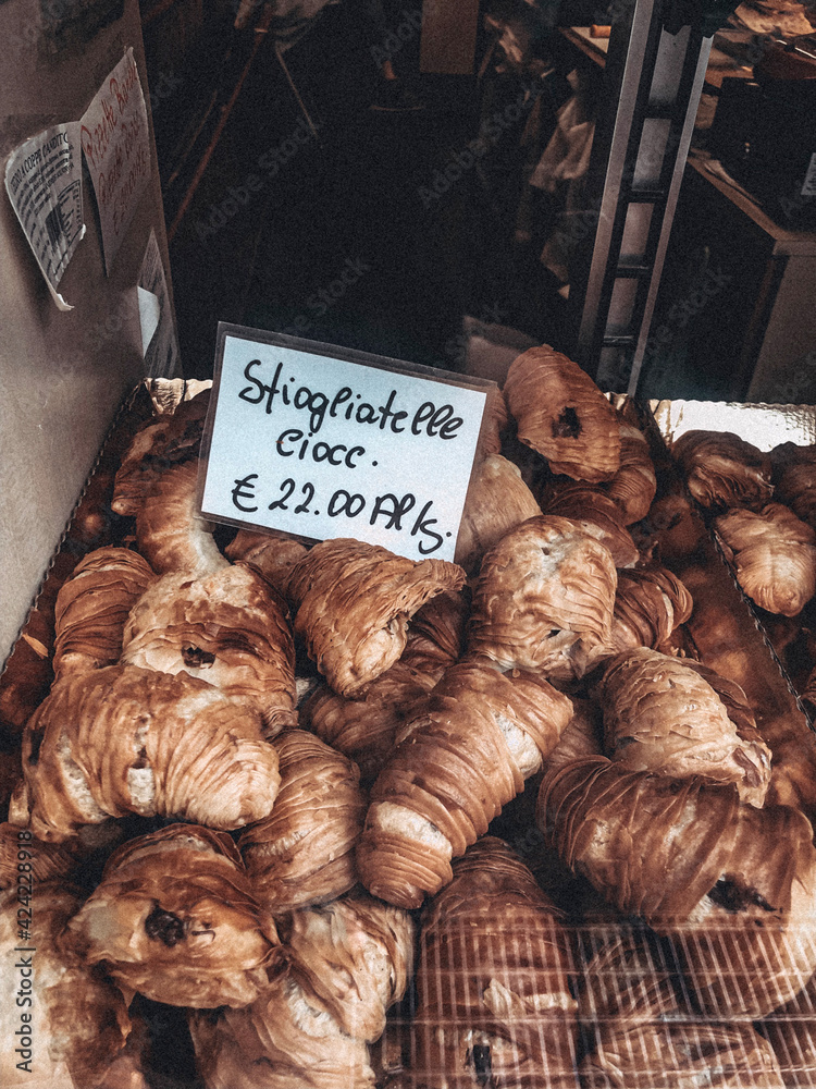 Italian fresh croissants and shop counter price