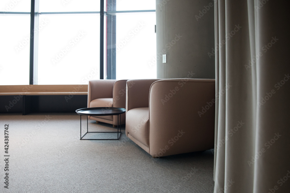 lounge coffee table sleek modern interior window natural simple minimal neutral carpet office