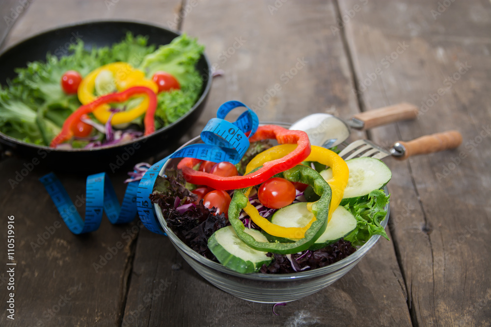 Donuts sprinkled with powdered sugar on a paper plate. Takeout food. Colored background.
