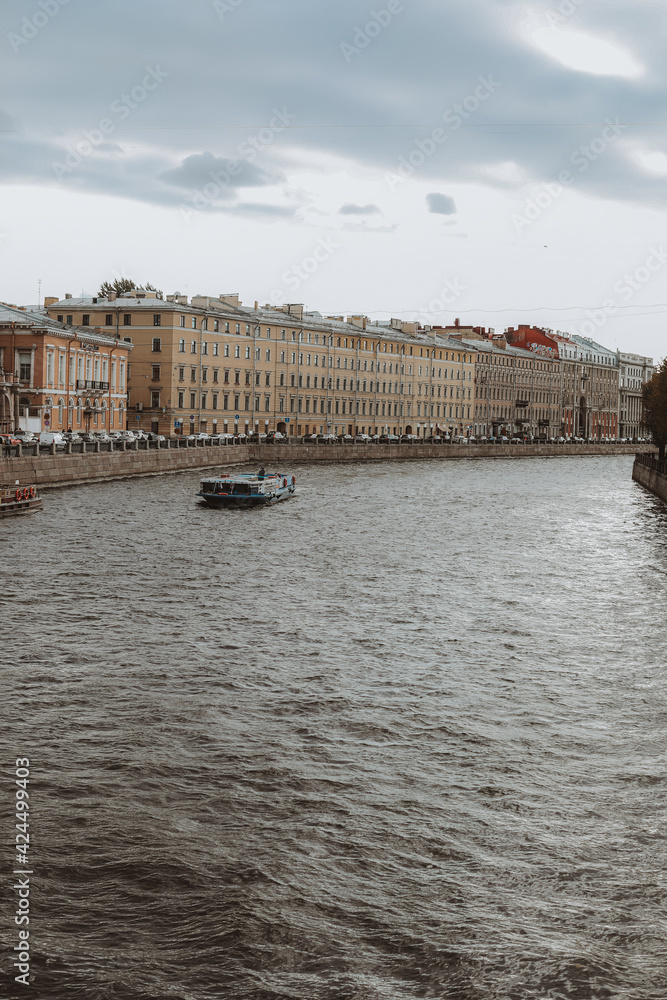 ST. PETERSBURG / RUSSIA - October 19 2020: View of the river and historic buildings on the streets of St. Petersburg