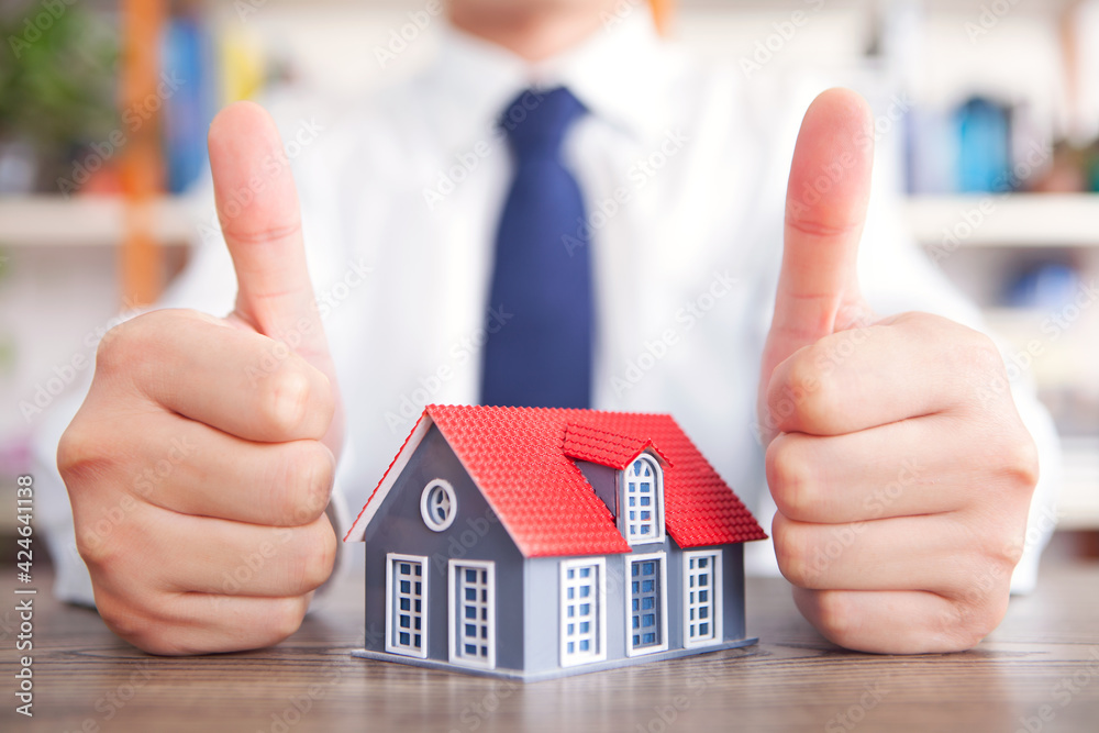 Thumbs up beside the model house