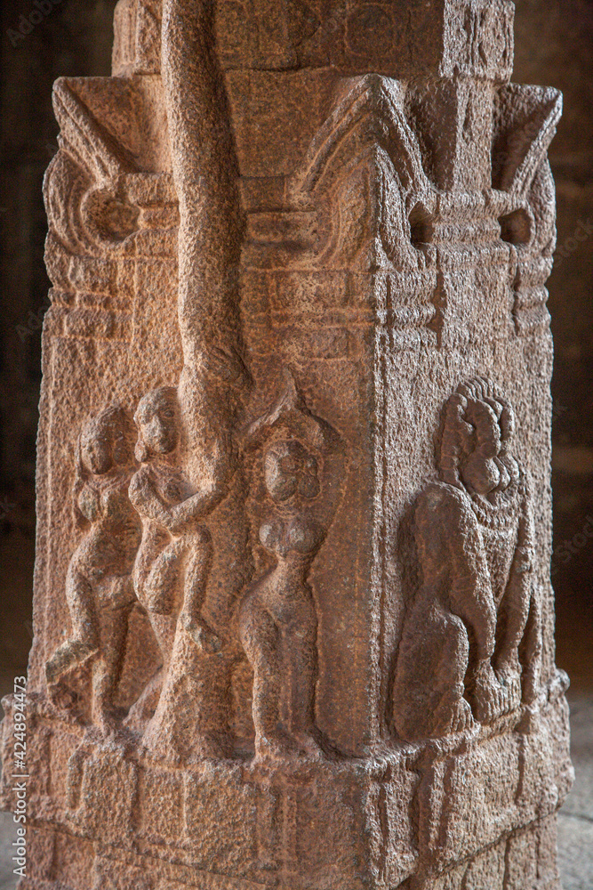 Ancient architecture of Hampi, Carvings inside the temple, Karnataka state, India