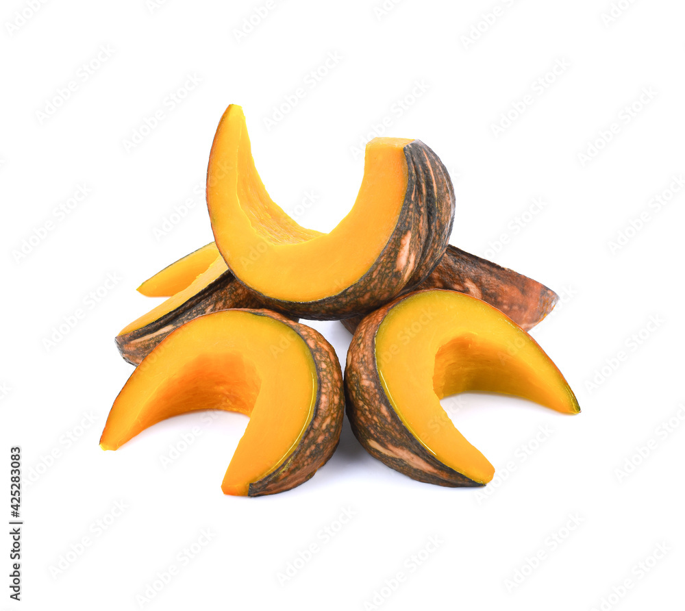 Thai dessert - Close up of Egg Custard in the pumpkin on white background.