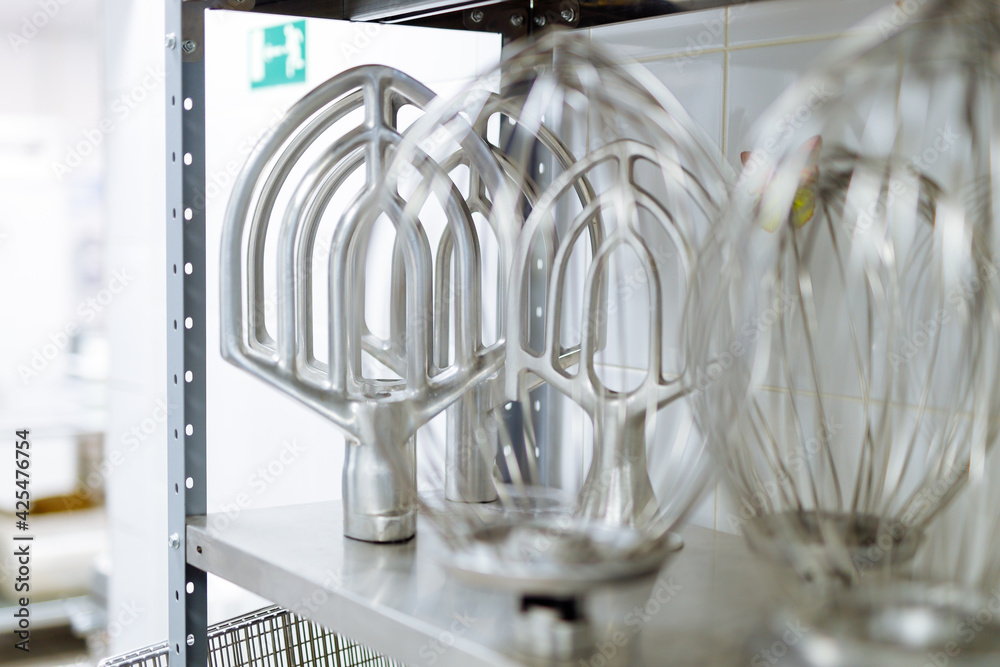industrial mixer attachments for mixing dough and fillings of cakes and pastries. Confectionery factory