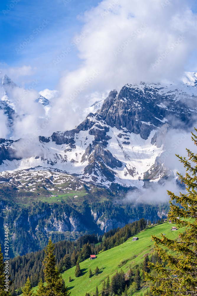 The Swiss Alps at Murren, Switzerland. Jungfrau Region. The valley of Lauterbrunnen from Interlaken.