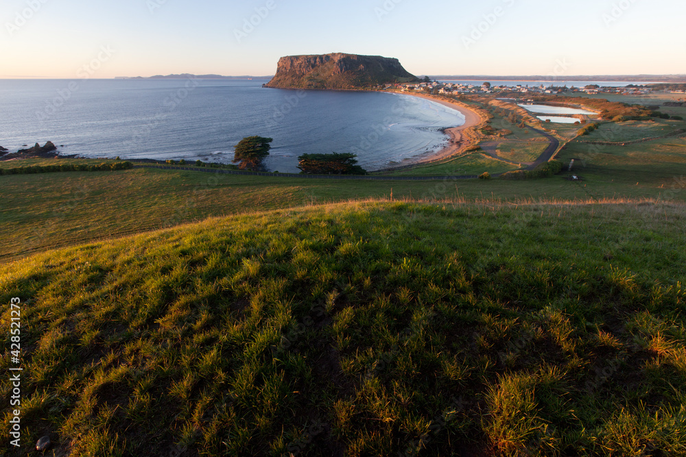 Lush green grassland around The Nut, Stanley, Northwest Tasmania