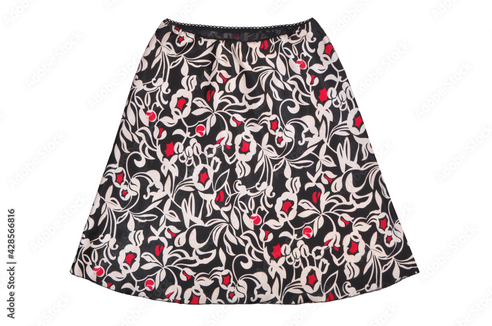 silk bellbottoms skirt isolated on white, with black, white and red pattern