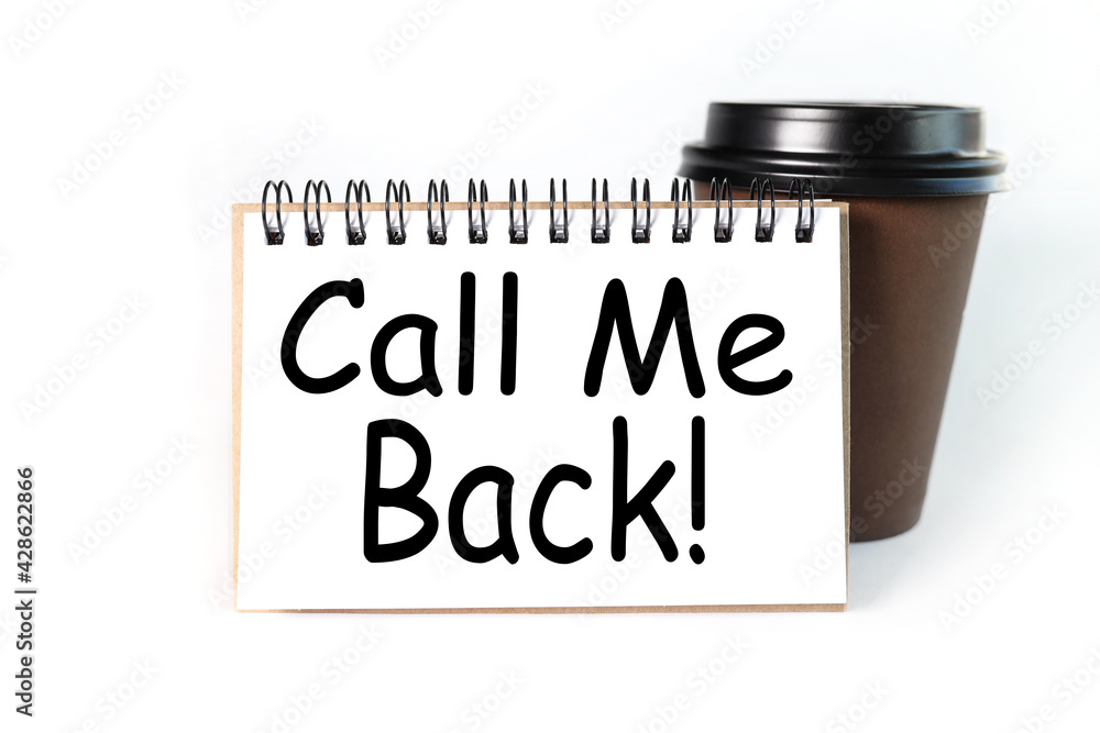 brown coffee cup. text on a notebook near a horse with coffee. call me BACK!