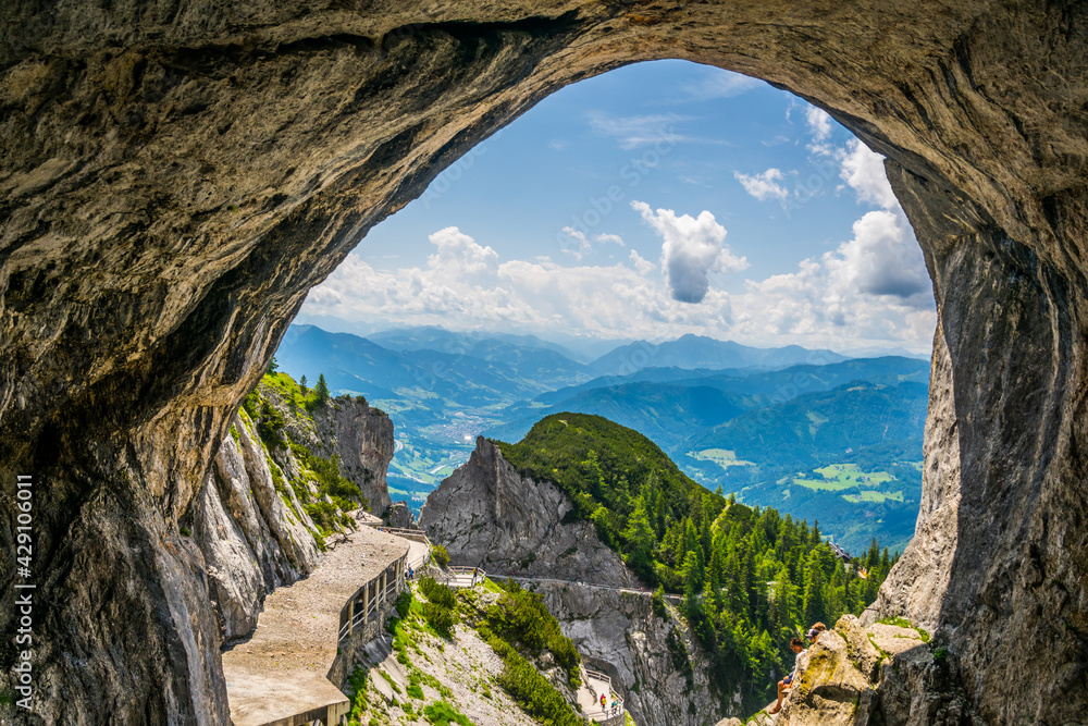 View of the Berchtesgaden alps from the Eisriesenwelt in Austria.