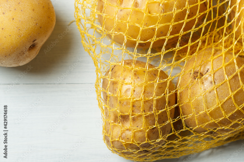 Fresh unpeeled potatoes in the grid. Natural background with vegetables. Close up, with copy space
