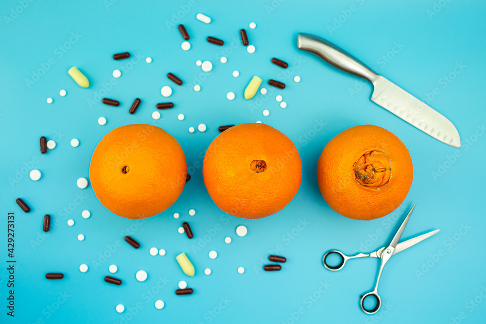 orange navel with the concept of demonstrating the problems of rectum, anus, itching and burning, cracks and inflammation