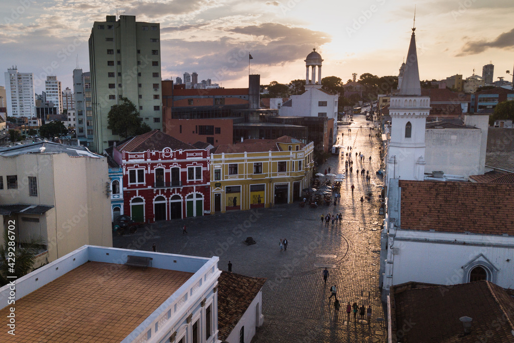 Aerial view of historical center of Curitiba city, Paraná. Brazil.
