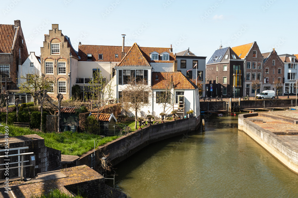 The picturesque fortified town of Schoonhoven on the river Lek in the Netherlands.
