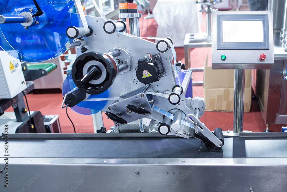 Automatic plastic bag sticker labelling machine. Packaging Label logo branding.