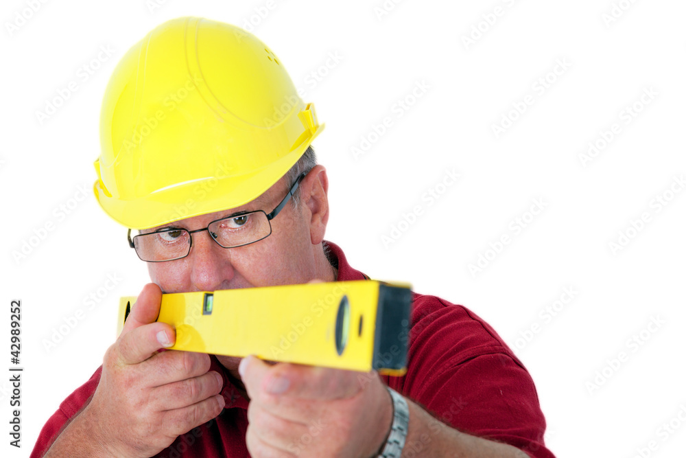 Construction worker with level