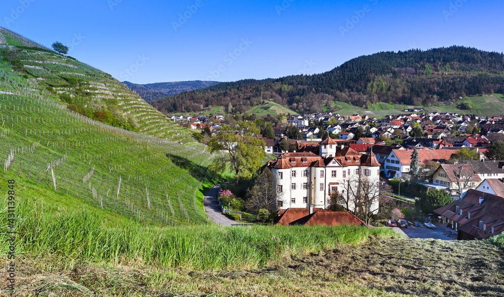 The beautiful Schloss Neuweier winery between Sinzheim and Buehl. Baden Wuerttemberg, Germany, Europe