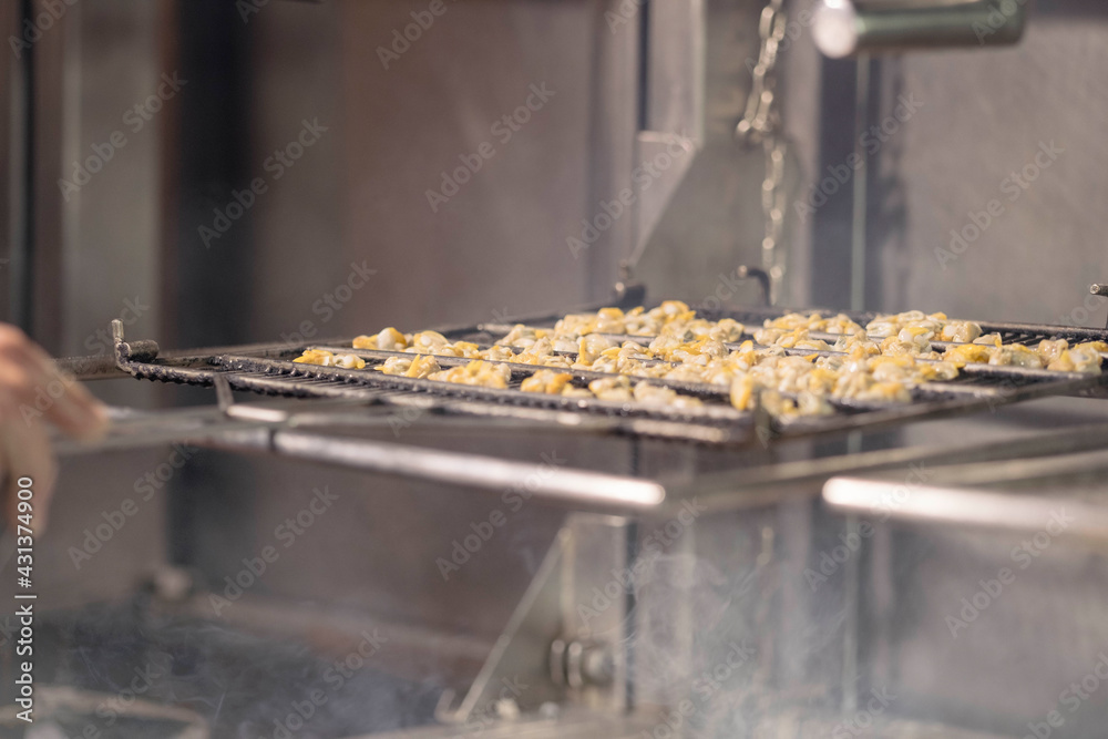 Berberechos a la parrilla de leña