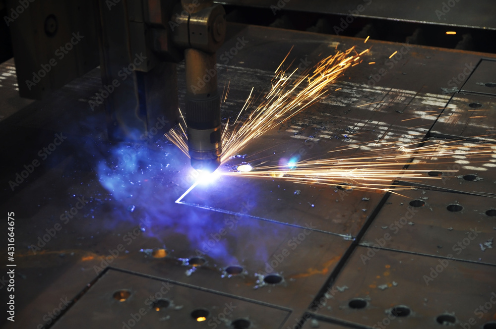 Metal cutting. Technological process of cutting sheet metal with a plasma cutting machine.