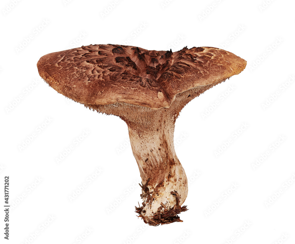 Fungi Sarcodon Imbricatus on white background, isolated, closeup
