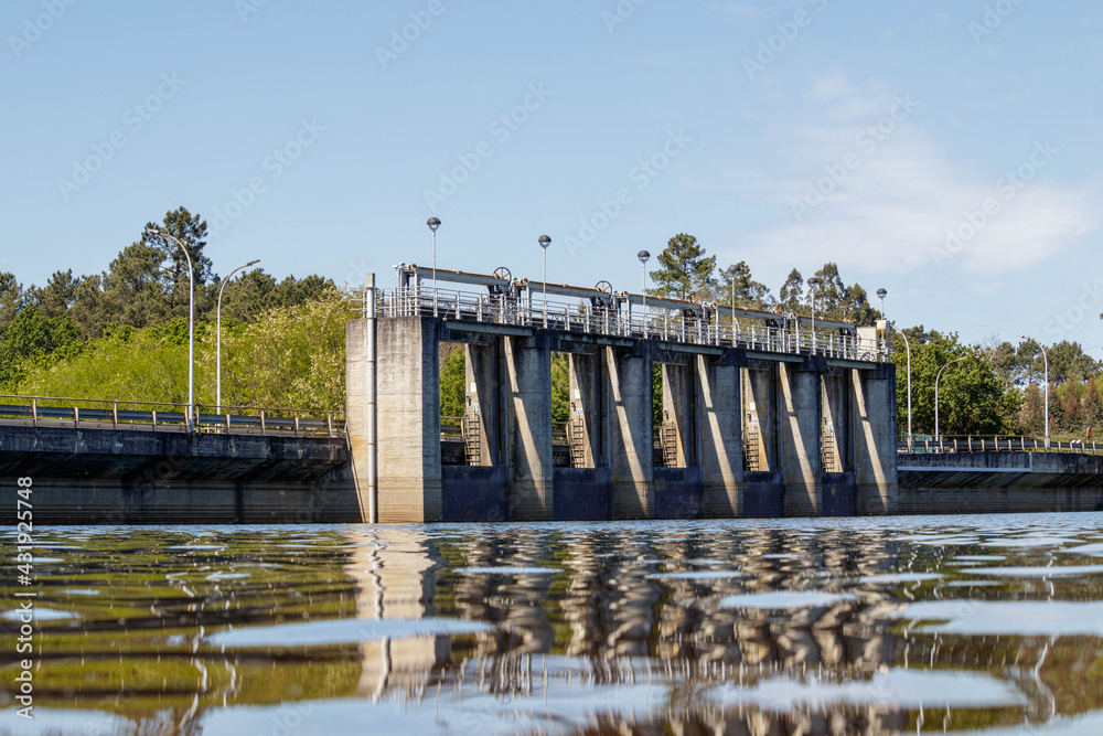 Virtical rising sluice gates of the dam in Cecebre Coruna Spain