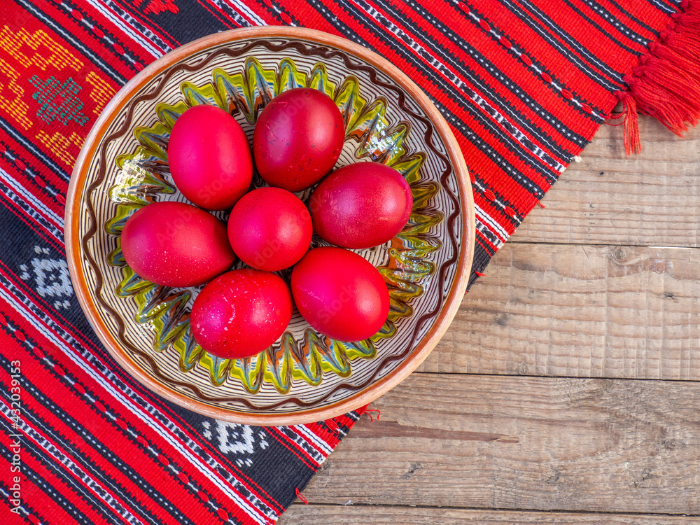 easter red eggs on a wooden background